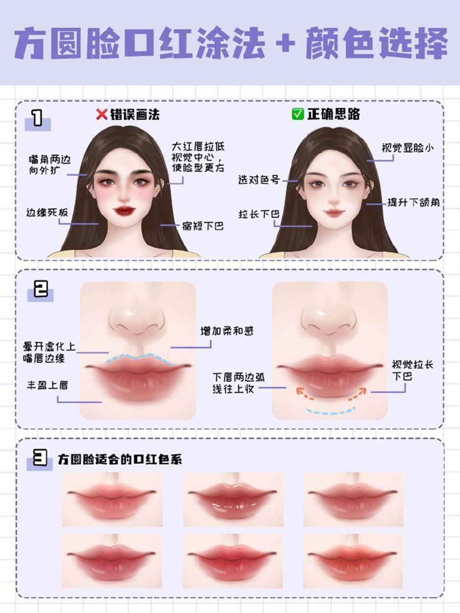 适合方圆脸的口红涂法和色号,广西化妆教学基础