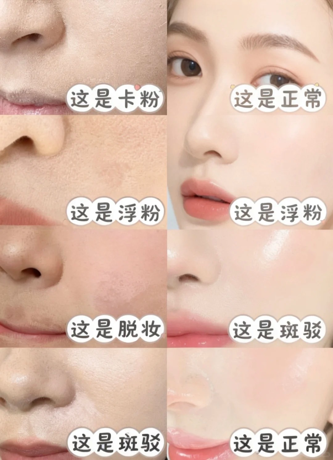 教彩妆南宁、学化妆0基础:明明已经用粉底液将底妆打造好了,但是为什么没过多久整张脸就变成了“底妆车祸现场”呢?常见的底妆问题有卡粉,浮粉,脱妆,接下来南宁彩妆专业学校(丽竹彩妆专业学校)就教大家如何判断你的底妆问题?