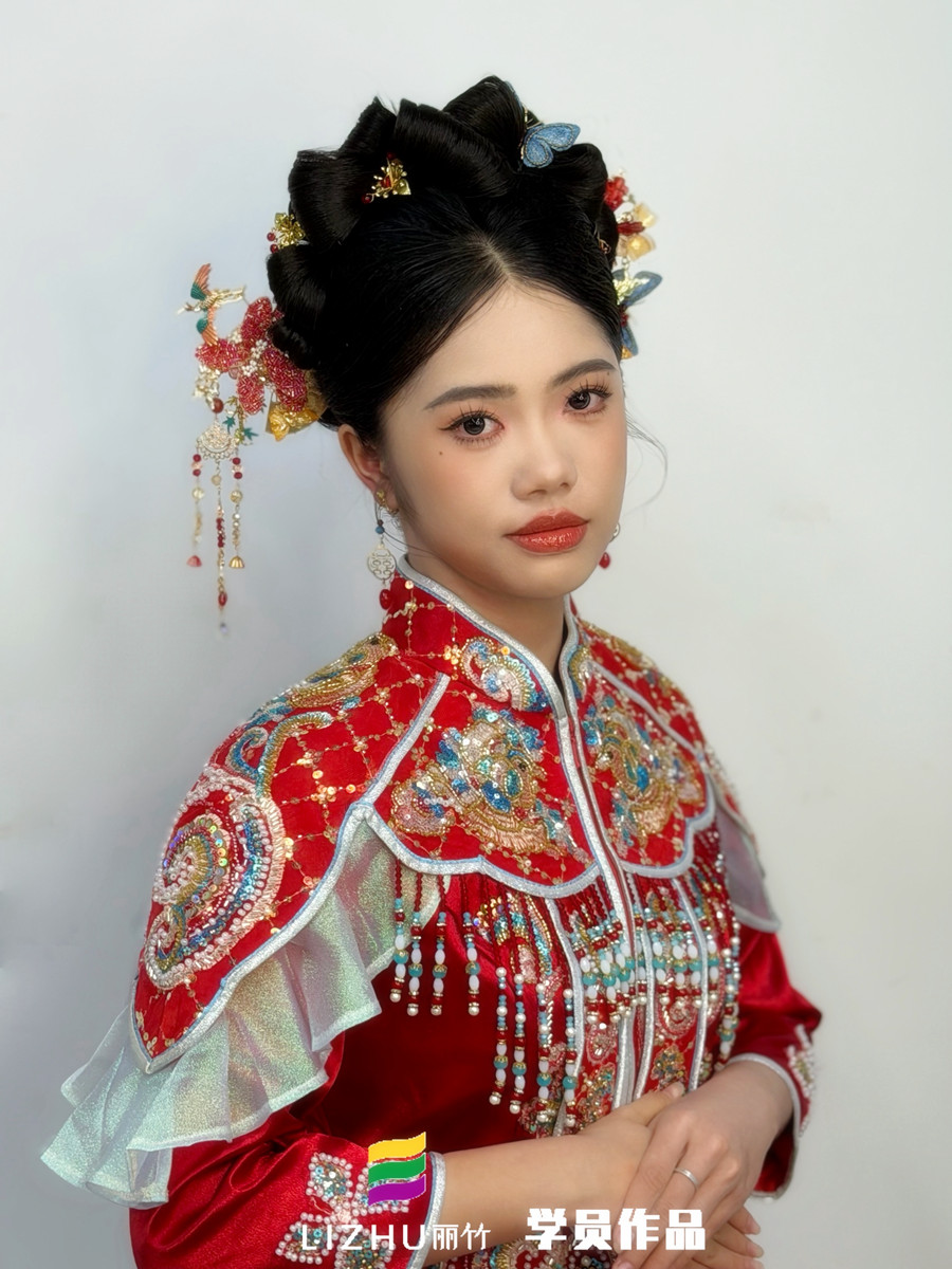 学化妆广西(丽竹化妆教育)学员刘丹丹作品名----秀禾新娘造型(二)