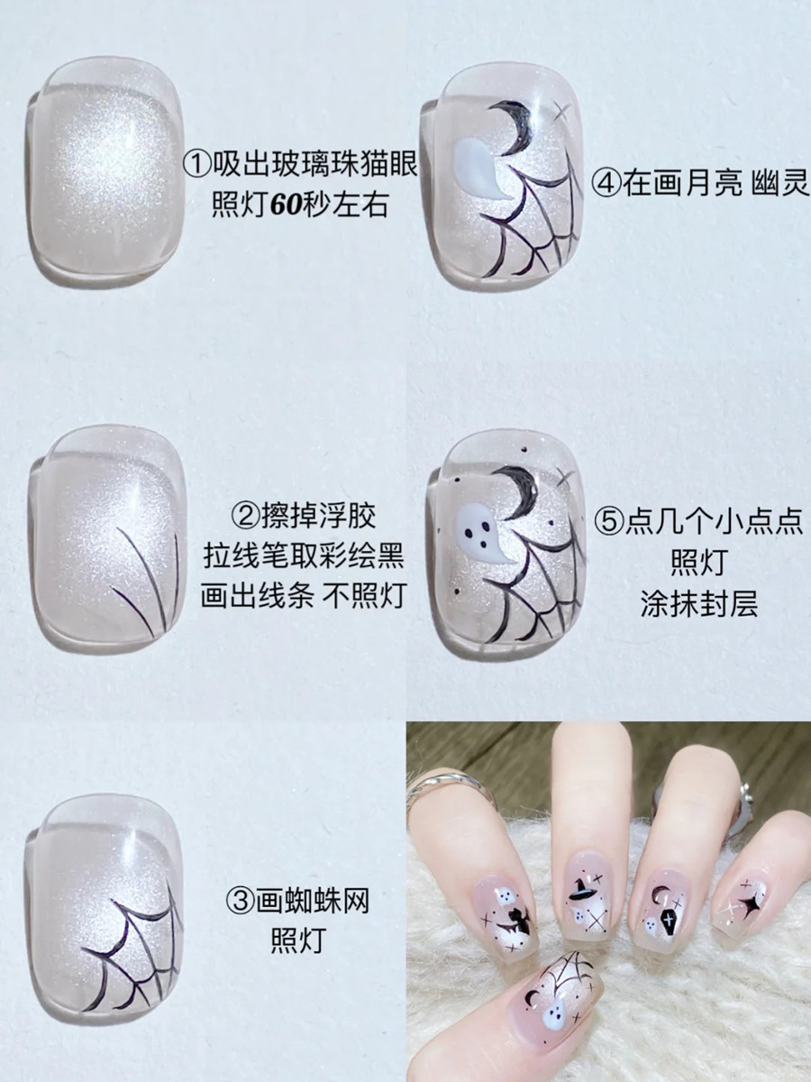 广西美甲店、广西美甲学徒:一年一度的万圣节就要到了,又是时候给你的小甲片上画上各式各样的万圣节图案啦!什么?你说你还没有想好画什么?别着急,广西美甲师教学已经为各位零基础学美甲的小伙伴分享猫眼万圣节美甲教程,大家记得收藏哦!