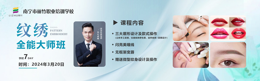 如果你是在职纹绣师,看完上面的介绍希望当顾客询问你这两者的区别时,你可以很好做出解释并且推荐顾客找到适合的项目。除外,如果你想提升技术,想知道南宁纹绣进修去哪里?南宁纹绣师学校(丽竹纹绣大师班)将于3月20日开班,行业纹绣导师带来全新纹绣技术,学到即赚到,赶紧报名吧!