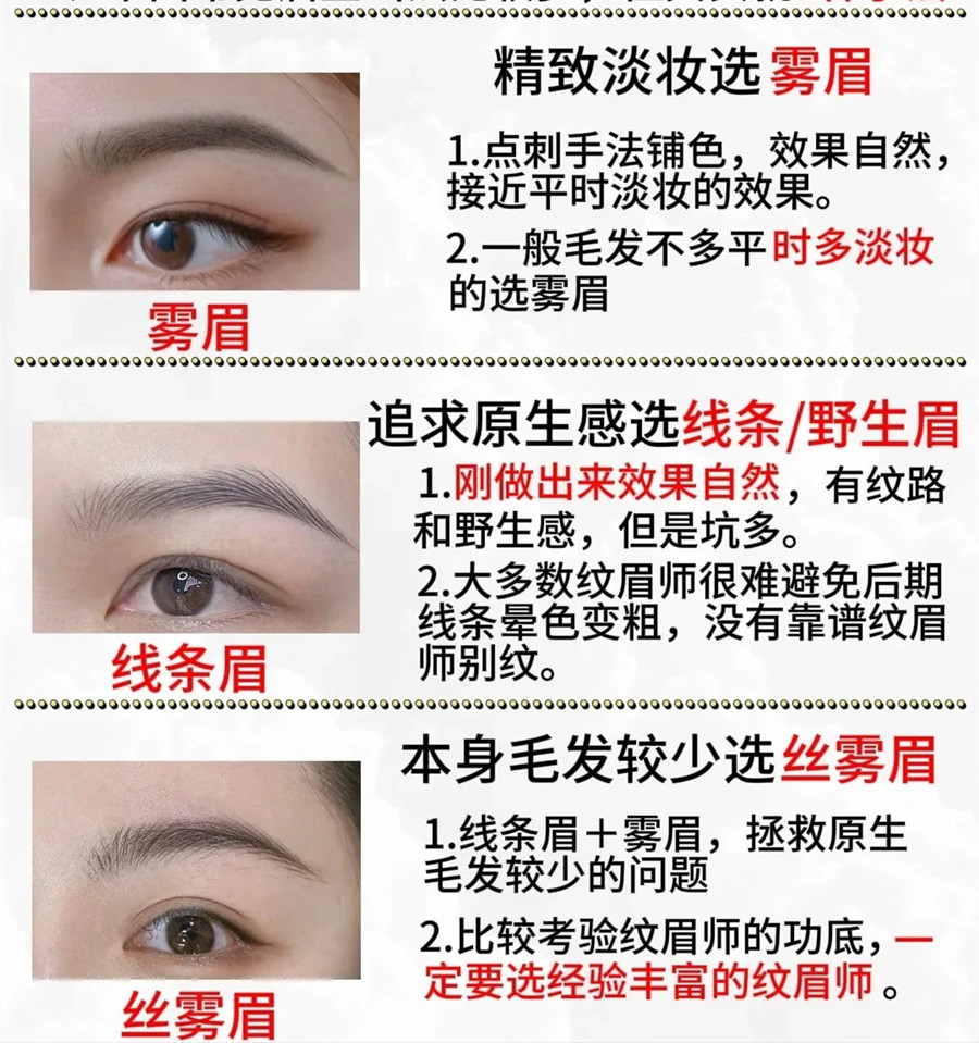 广西纹绣市场、广西纹绣发展:也许你已经发现了,市场上对于纹绣眉型的叫法有很多种,但只要你在广西纹绣专业学校(丽竹纹绣专业学校)经过系统的学习,你就会发现操作纹绣眉型的方法其实就只有三种,分别是:雾眉,线条眉,丝雾眉。如果你是0基础学纹绣的小伙伴,就赶紧和我们一起学习它们的特点吧。